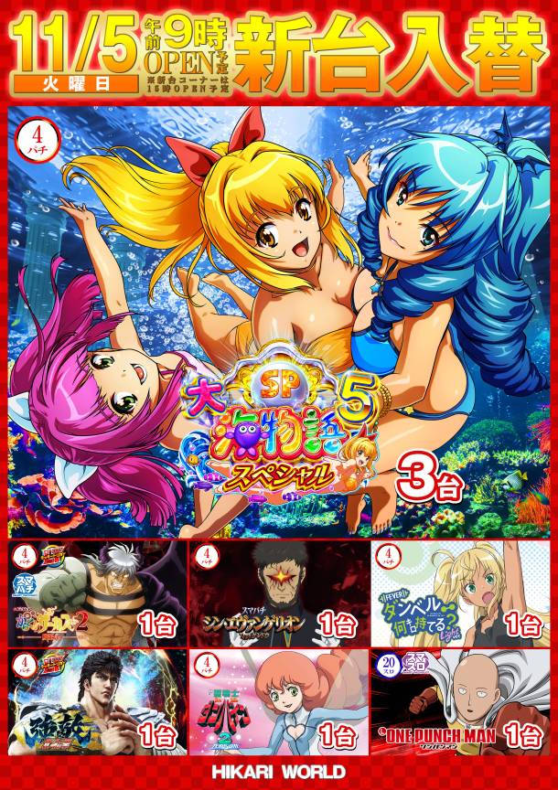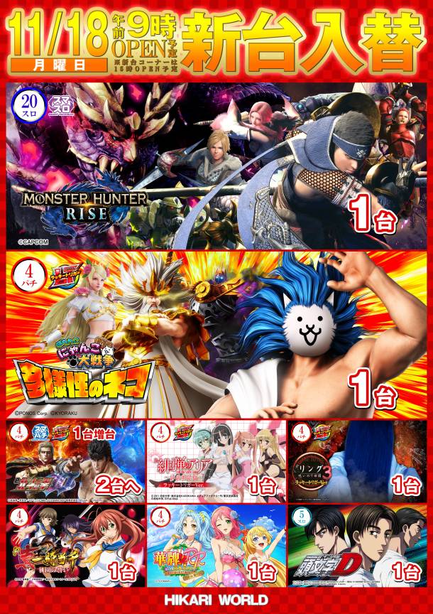 🌏本日新台入替🌏7機種9台導入予定🌽
