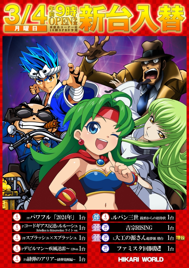 🌏本日新台入替🌏9機種9台導入予定🌽