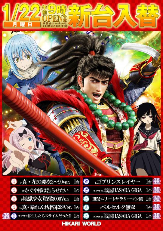 🌏本日新台入替🌏8機種8台導入予定🌽
