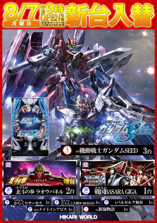 🌏本日新台入替🌏8機種11台導入予定🌽