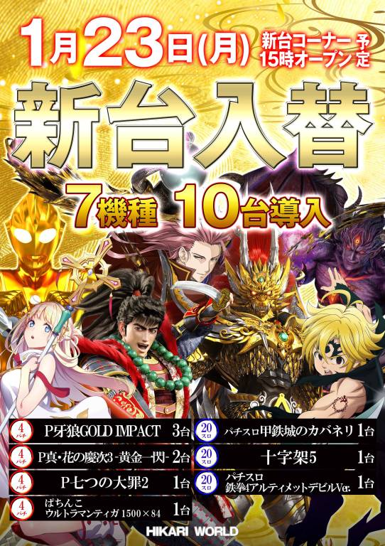 🌏本日新台入替🌏7機種10台導入予定🌽