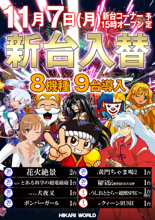 11月7日(月)🔊新台入替🎶
