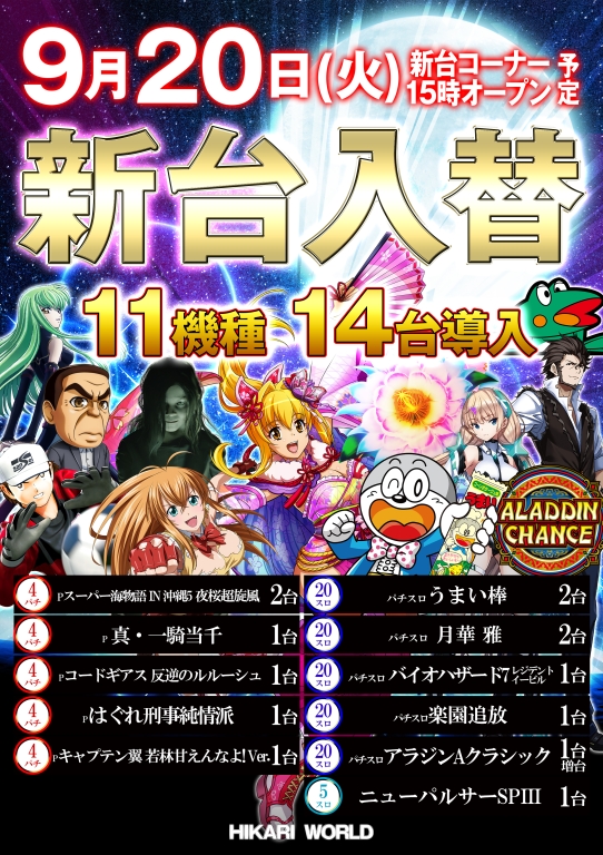 9月20日(火)🔊新台入替🎶