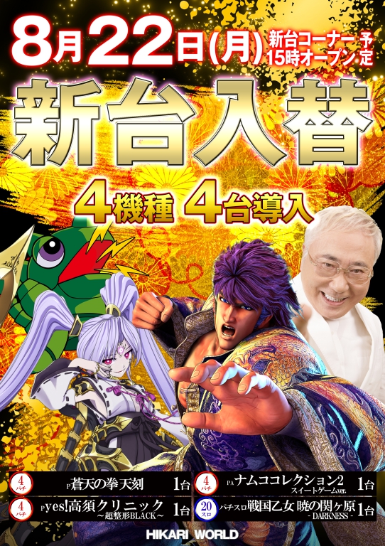 🌏本日新台入替🌏4機種4台導入予定🌽