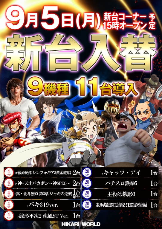 🌏本日新台入替🌏9機種11台導入予定🌽