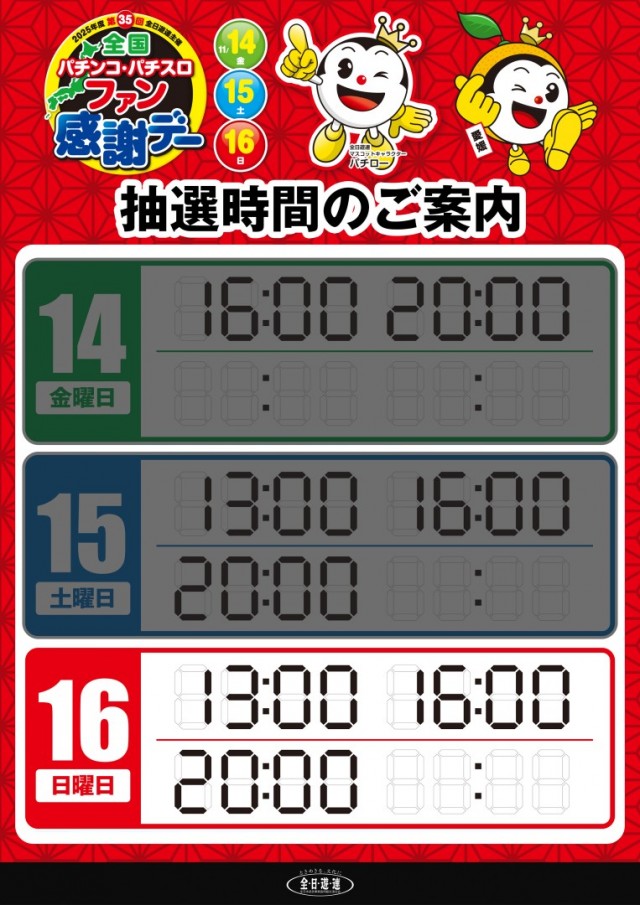 1位 11月5日(水) 2位 11月14日(金) 3位 11月16日(日)