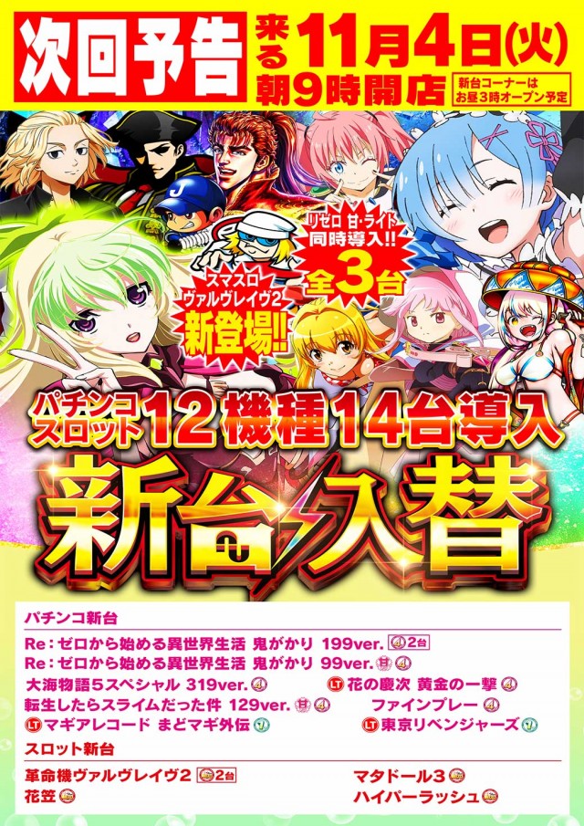 明日新台入替2日目! 新台コ-ナ-朝9時オ-プン!🌸