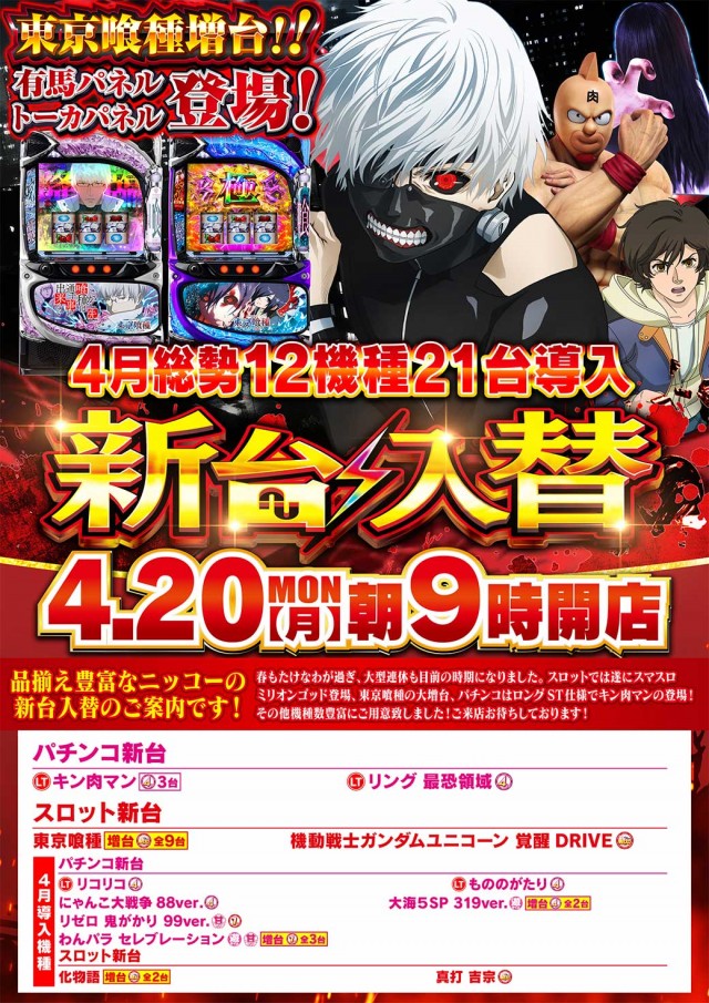 本日新台入替2日目! 新台コ-ナ-朝9時オ-プン!🌷😍🌹