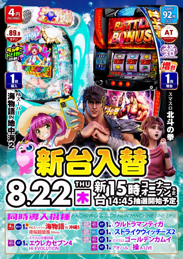 8月22日(木) 新台OPEN予定