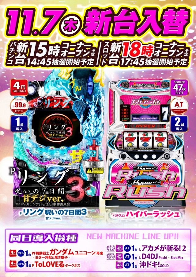11月7日(木) 新台OPEN予定