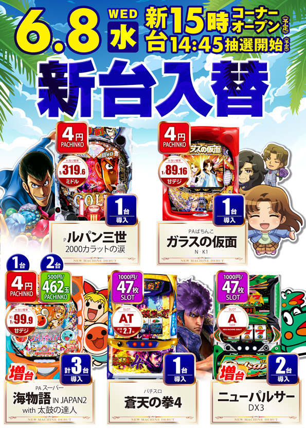 6月8日新台OPEN予定🌟🌟詳細はこちら👈👈👈