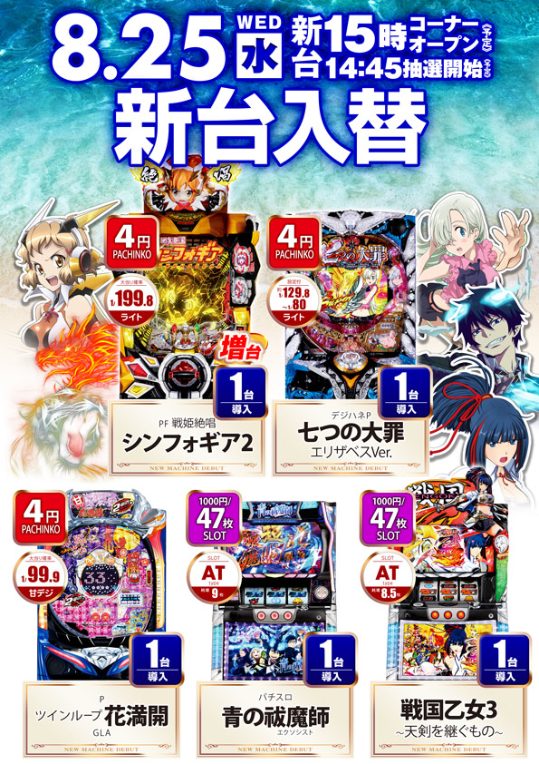 8月25日新台OPEN予定🌟🌟詳細はこちら👈👈👈