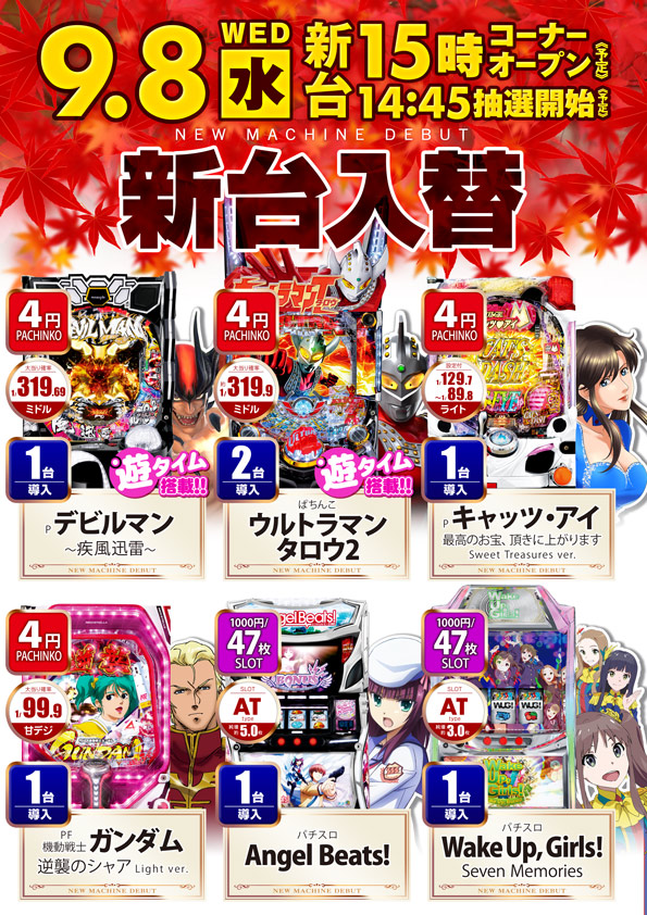 9月8日新台OPEN予定🌟🌟詳細はこちら👈👈👈