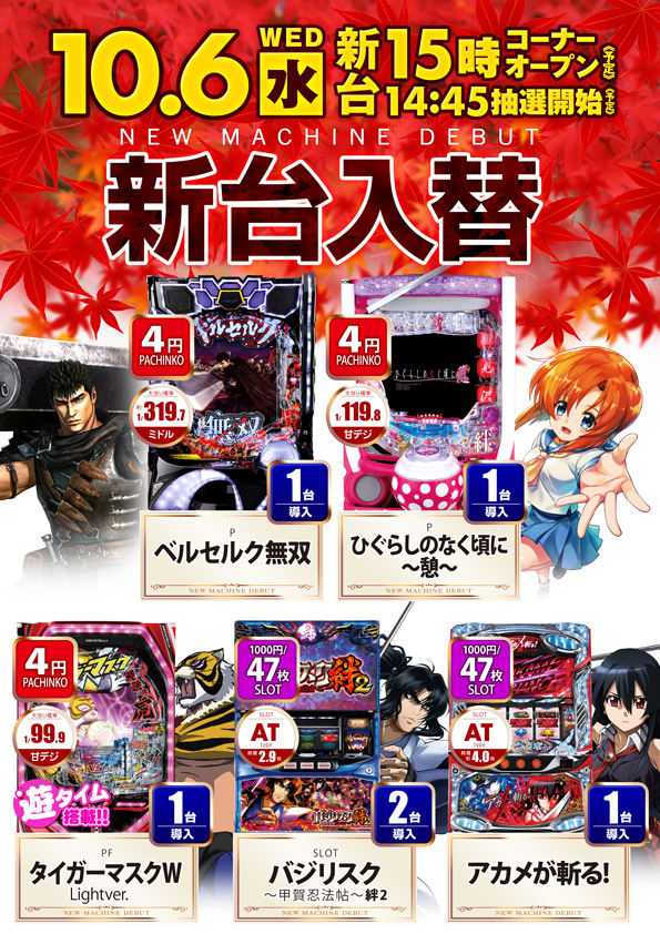10月6日新台OPEN予定🌟🌟詳細はこちら👈👈👈