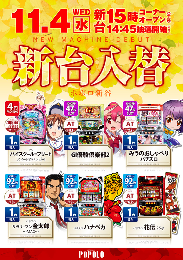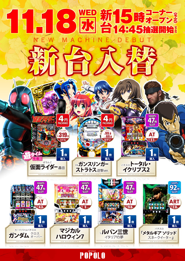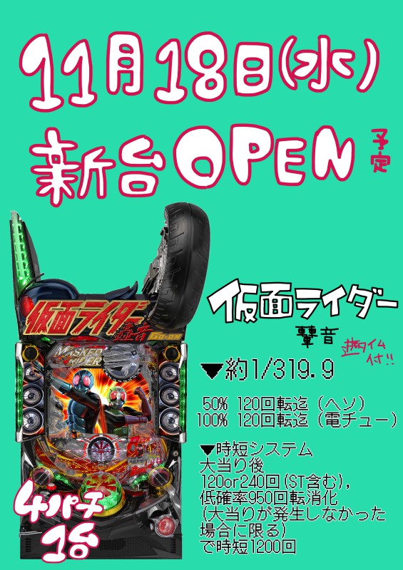 11月18日新台OPEN予定😎💓詳細はこちら👈👈👈