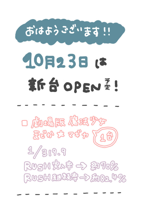 10月23日は新台オープン予定◎