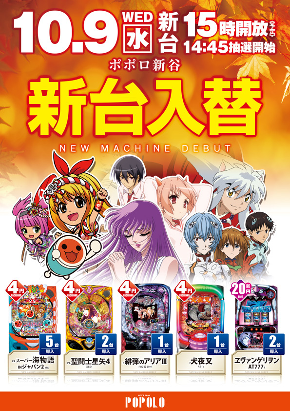 10月9日は新台オープン予定◎