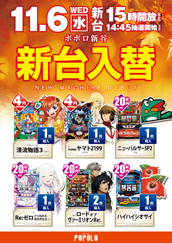 11月6日は新台オープン予定◎