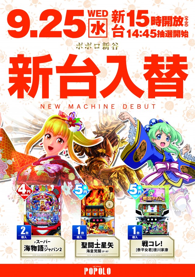9月25日は新台オープン予定!!