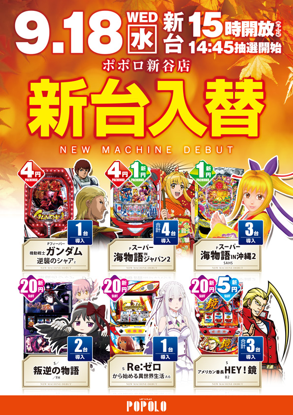 9月18日は新台オープン予定!!
