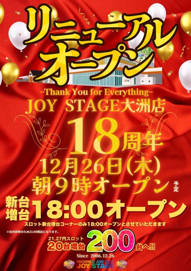 新台入替もジョイでお楽しみください!!!