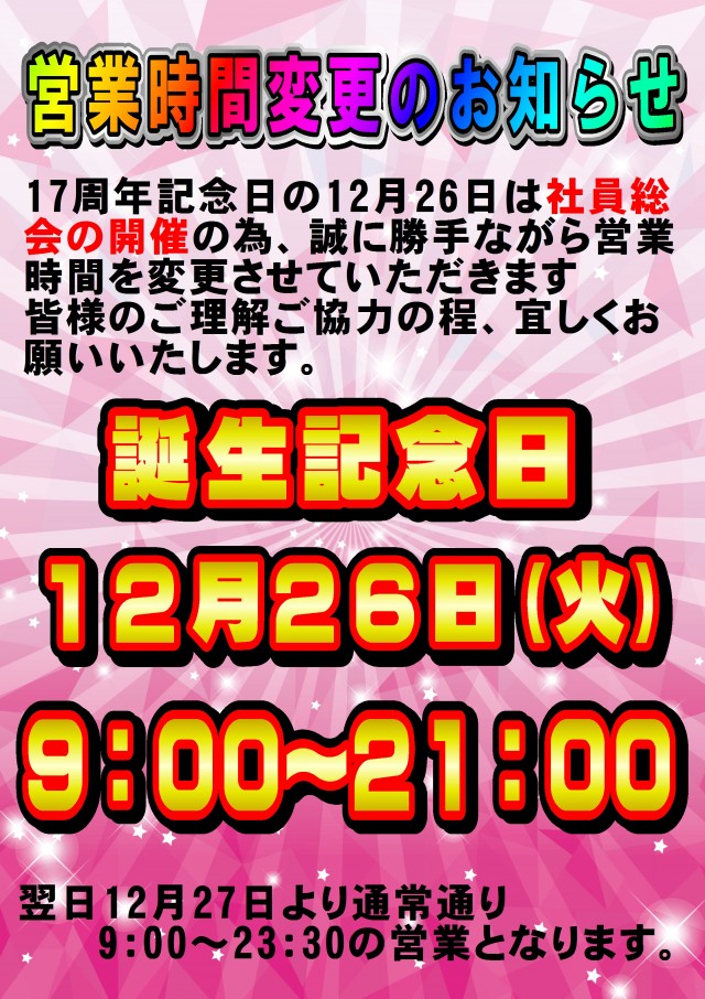 1位 12月26日(金) 2位 12月25日(木) 3位 12月21日(日)