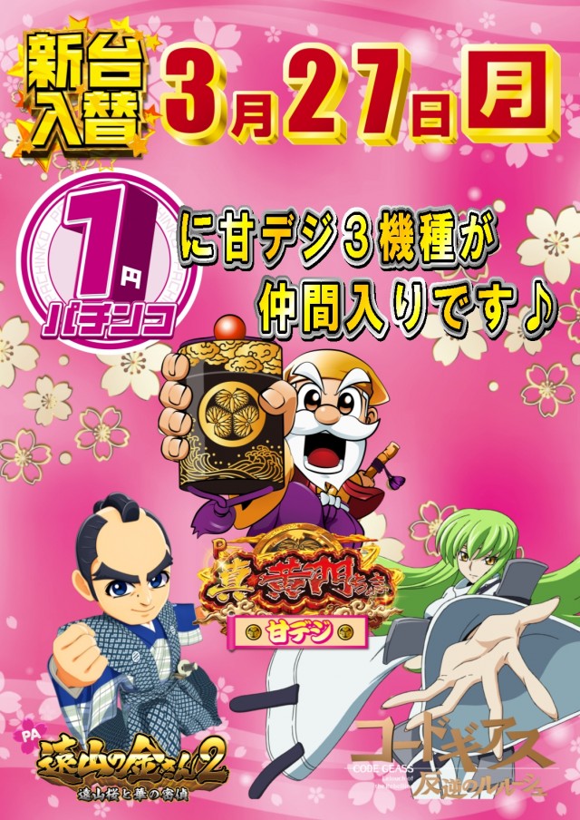 1パチに甘デジ3機種を導入!!!