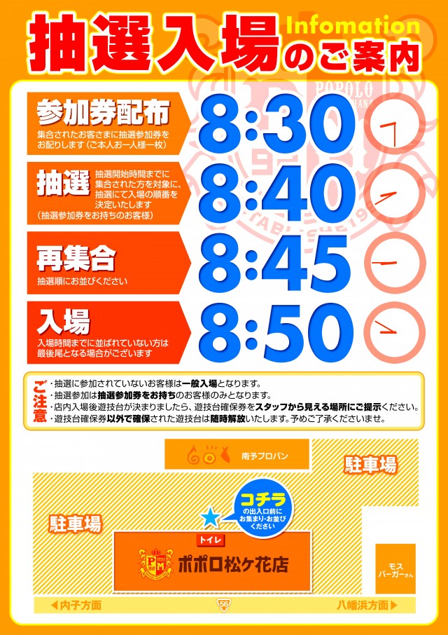 毎朝8:40にお並び頂いた方で入場順を抽選します。参加に会員カードは不要です。 |