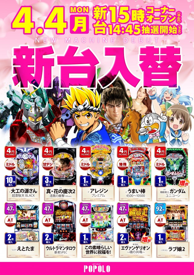 本日新台入替(予定)❗😊ご来店お待ちしております😌