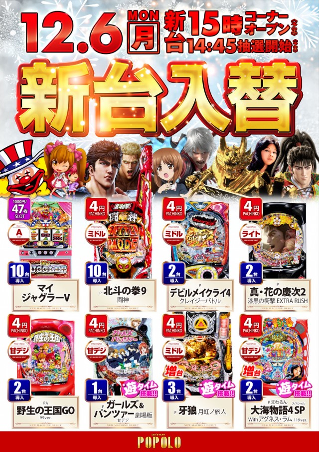 本日新台入替(予定)❗😊ご来店お待ちしております😌