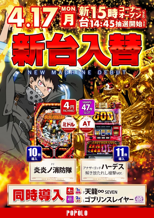 本日新台入替(予定)❗😊ご来店お待ちしております😌