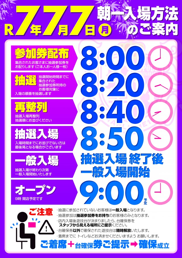 毎朝8:40にお並び頂いた方で入場順を抽選します。参加に会員カードは不要です。