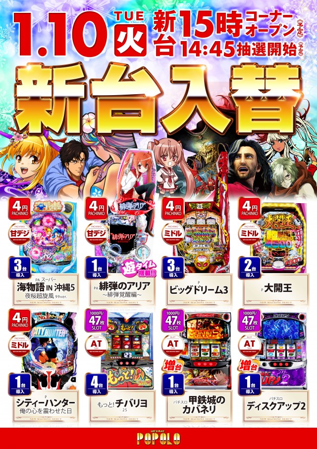 本日新台入替(予定)❗😊ご来店お待ちしております😌