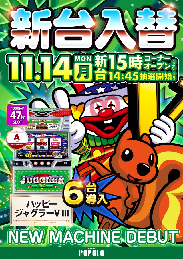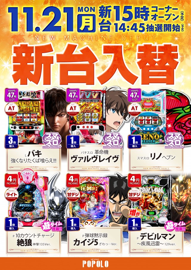 本日新台入替(予定)❗😊ご来店お待ちしております😌