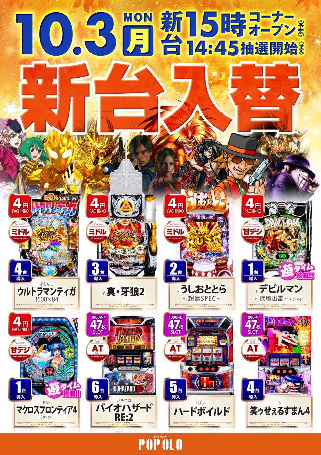 本日新台入替(予定)❗😊ご来店お待ちしております😌