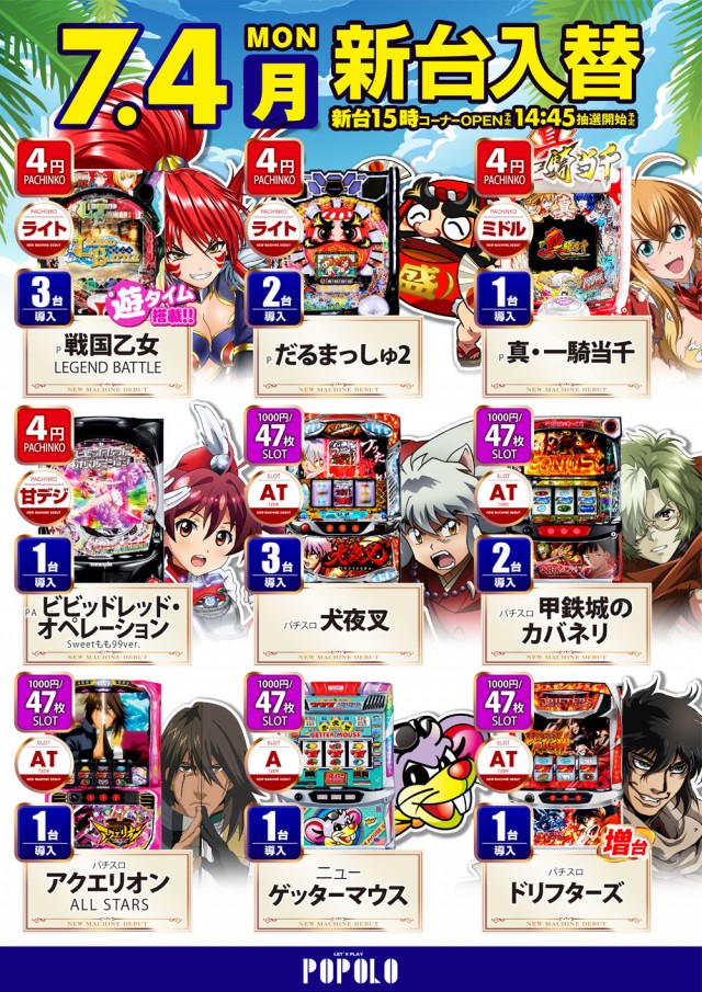本日新台入替(予定)❗😊ご来店お待ちしております😌