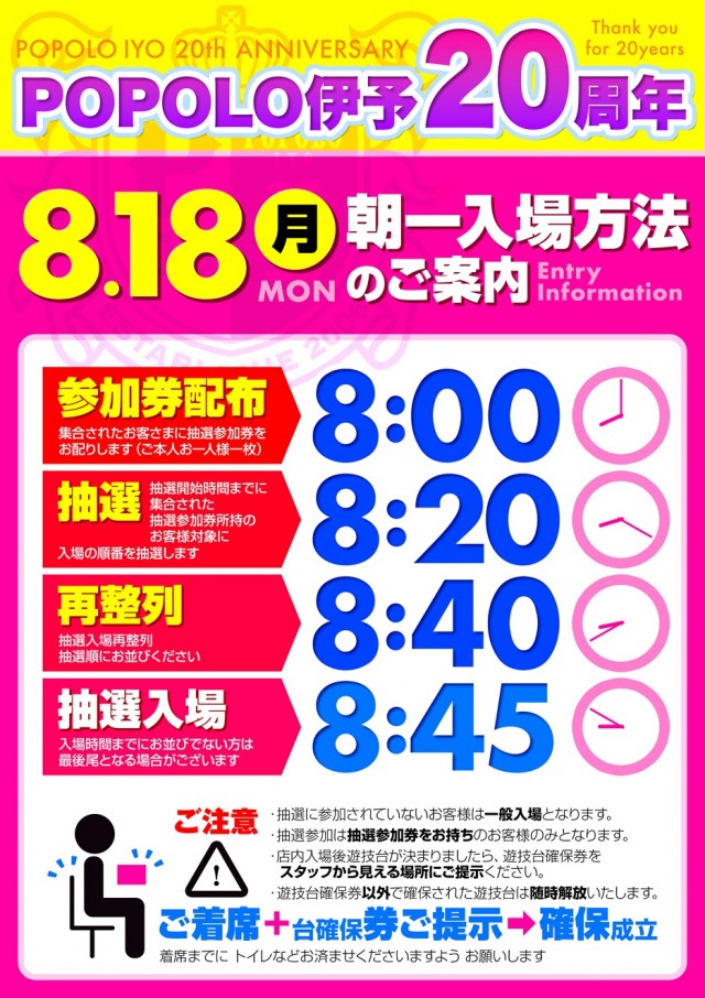 明日8月18日【月】🌈20周年🌈8:20抽選開始