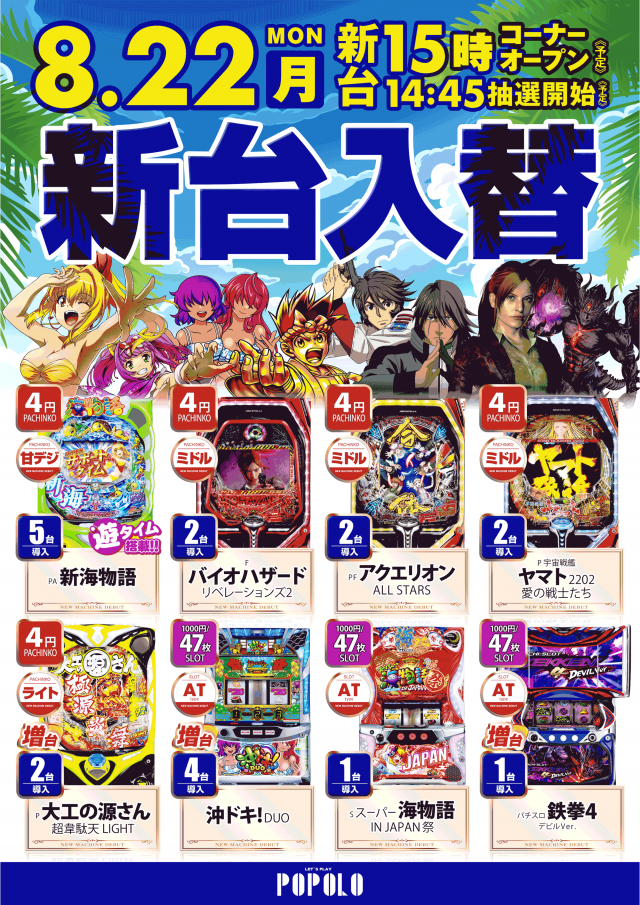 全480台両替不要4金種対応サンド完備致しております。