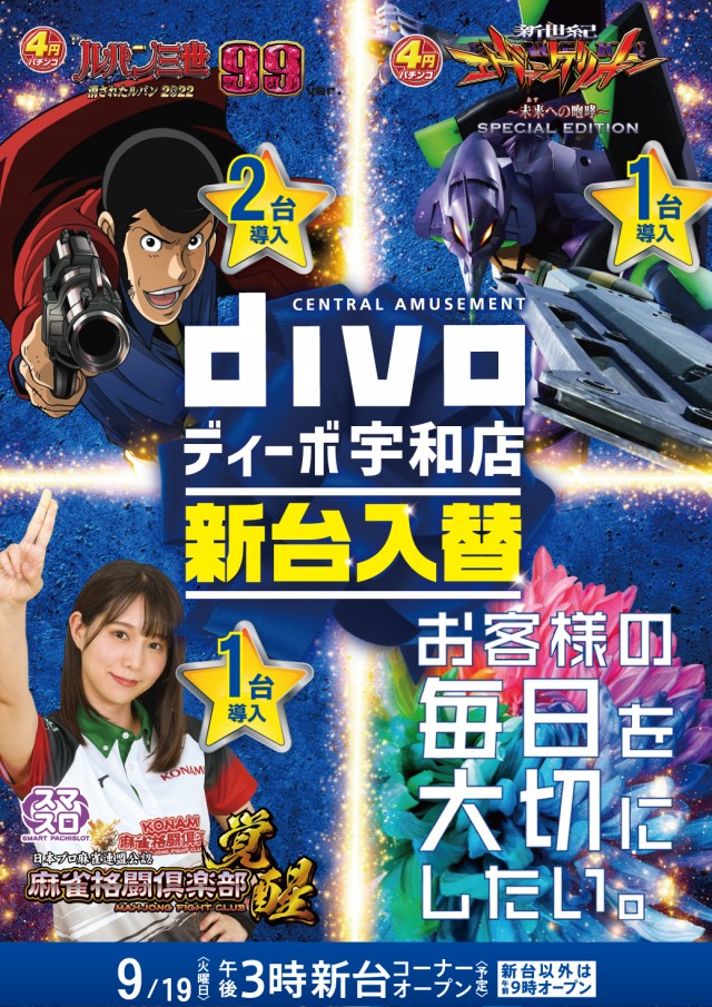 新台入替:3機種4台導入、皆様のお越しをお待ちしております。