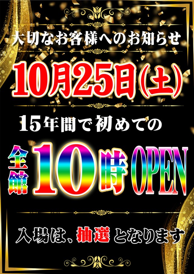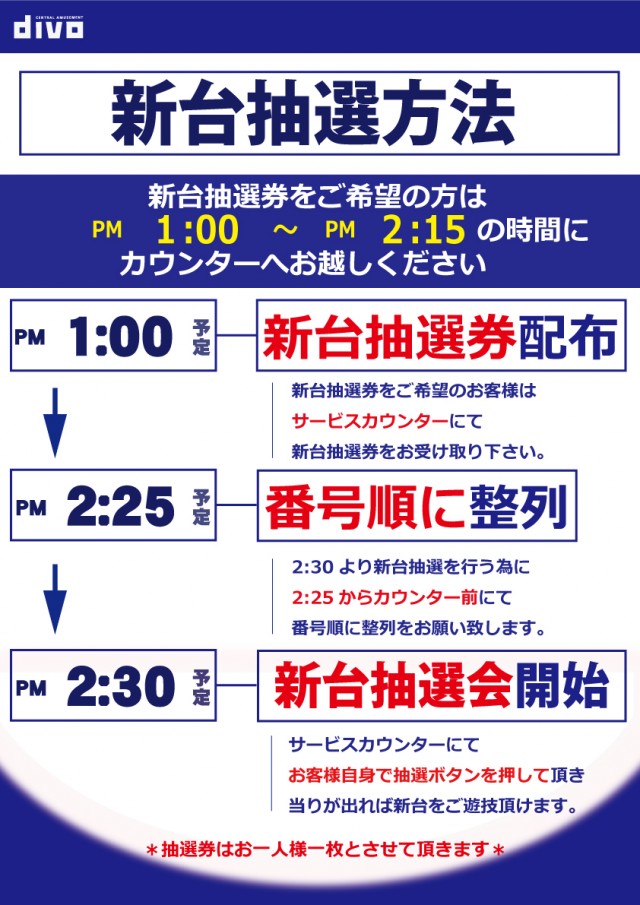 10/14(火) 新台入替 まもなく抽選券配布します。