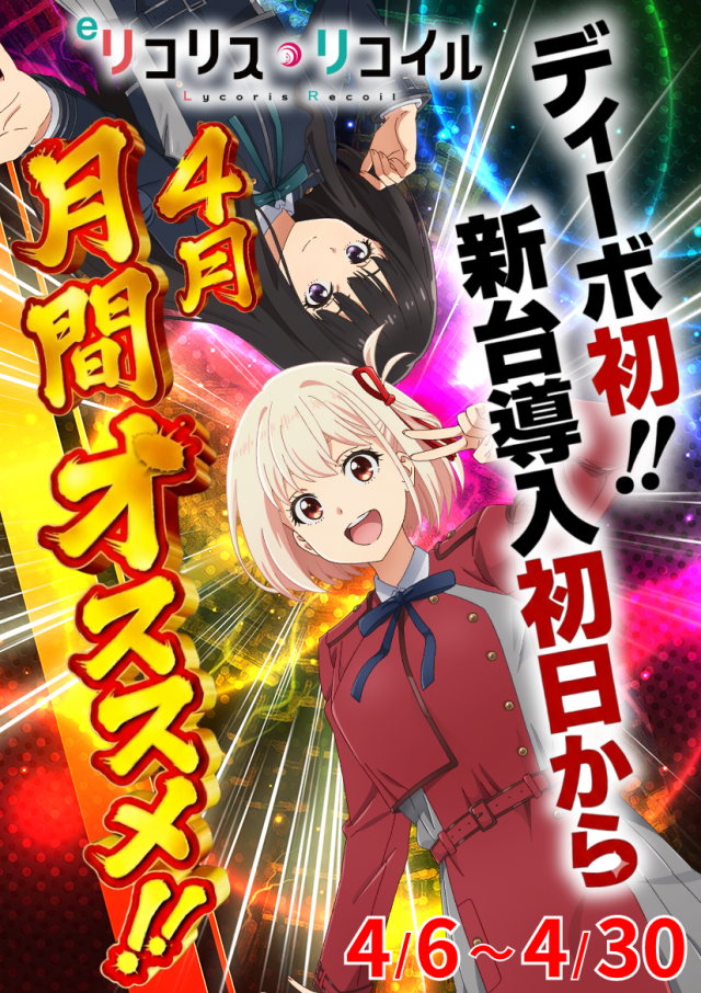 4/6(月) 新台入替 リコリス・リコイル8台導入!!