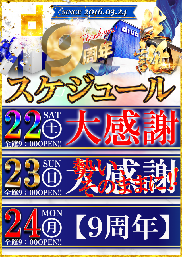 感謝の9周年!! ご来店お待ちしております!