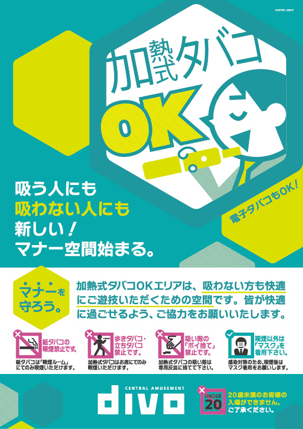 最大級加熱式たばこ喫煙可能エリア設置※20歳未満のお客様の入場ができません。