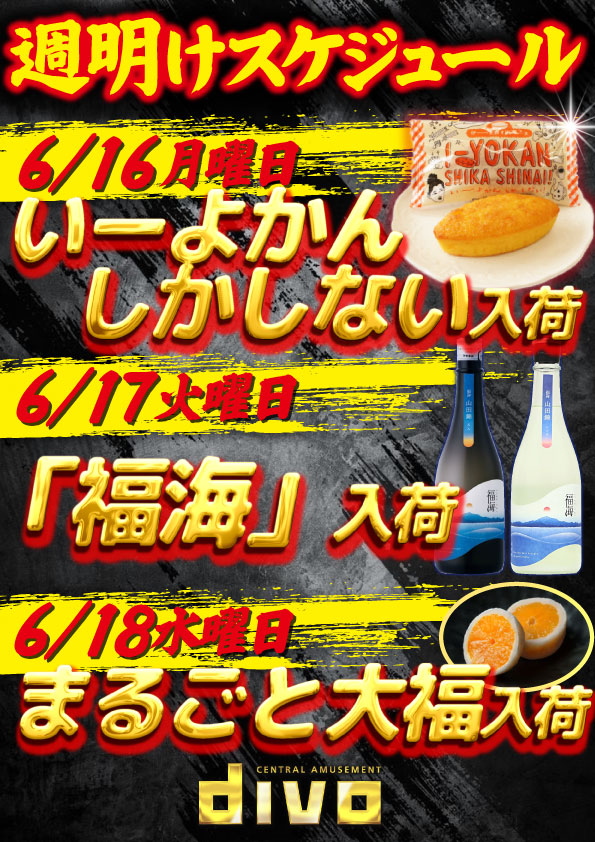 6/23(月)三共景品入荷 迷ったらdivo山越店へ!!