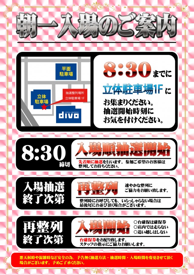 🌈本日もご来店をお待ちしております!入場抽選8:30です。🌈