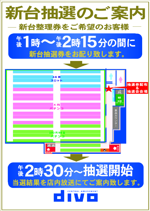 新台入替!13:00~新台抽選券配布中!14:30抽選開始!