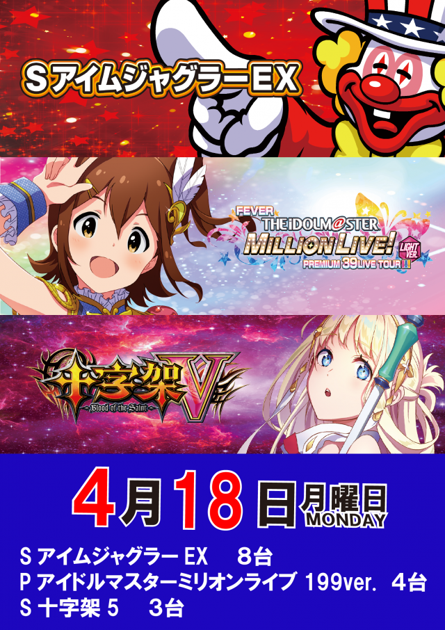 4月18日新台入替!明日もご来店をお待ちしております!
