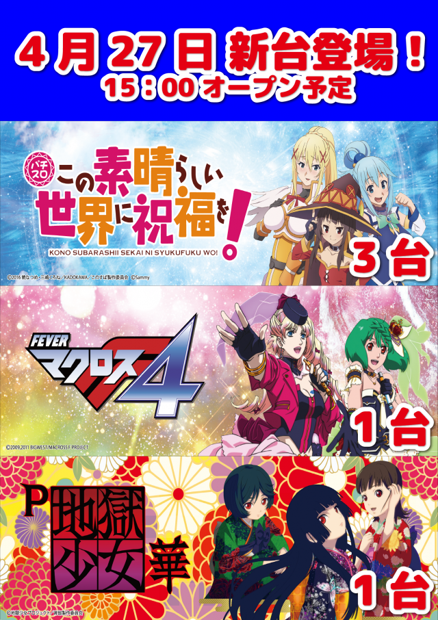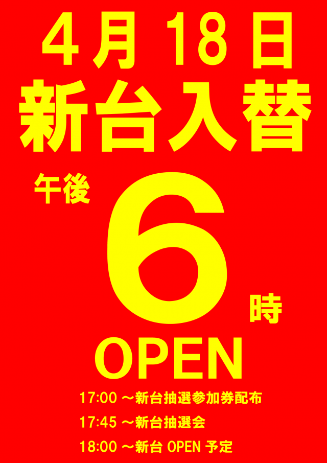 4月18日新台入替!17時~新台抽選参加券配布予定です。