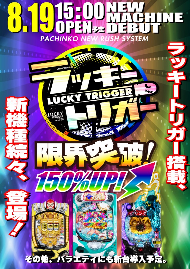 8月19日新台入替!この後13時~新台抽選参加券配布予定。