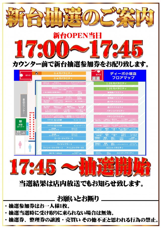 🌈新台6時OPEN!この後5時~新台抽選参加券配布予定!🌈